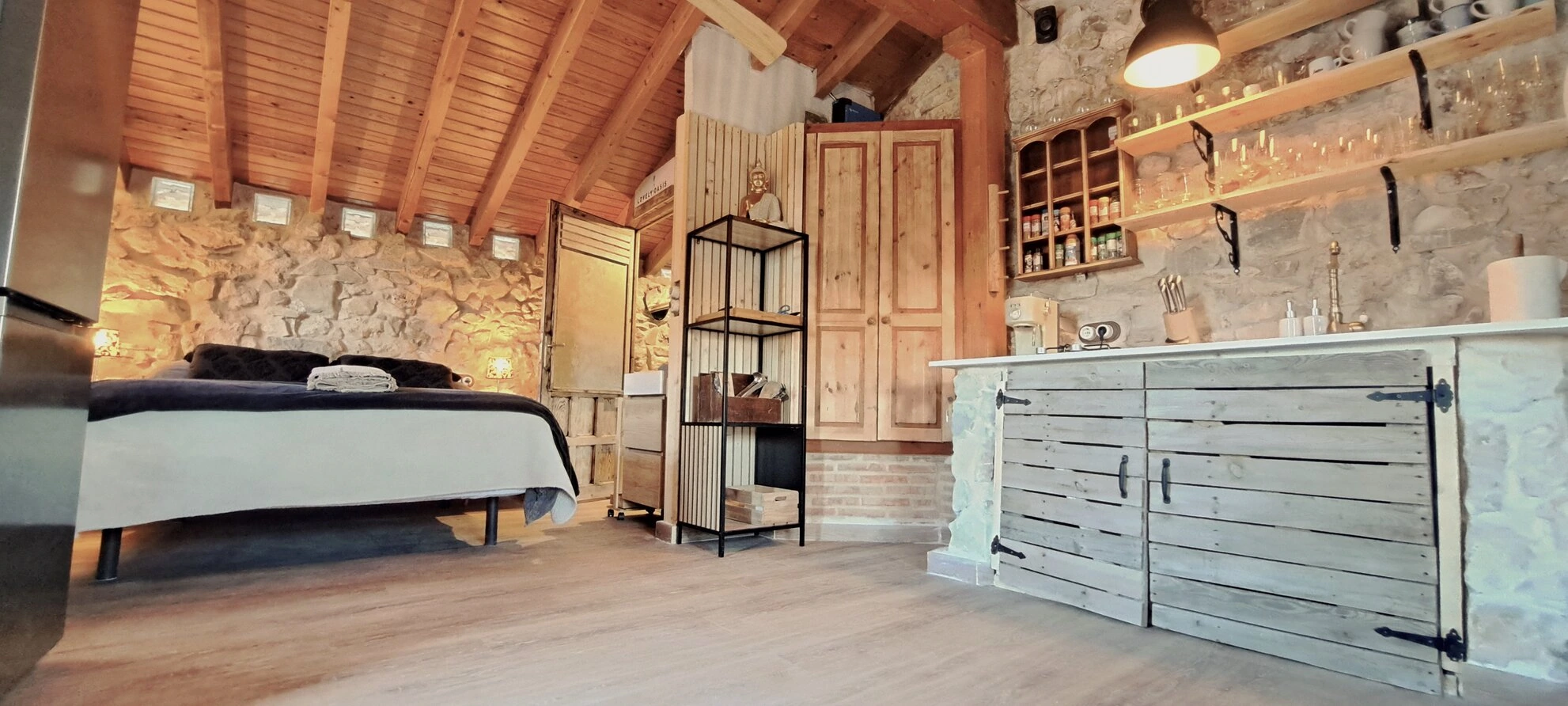 This tiny house was carefully designed and built by hand, creating a unique blend of comfort, serenity, and simplicity. Its remote location — without Wi-Fi, with limited solar-powered electricity, and water supplied through septic systems — offers a truly unplugged and immersive experience. The breathtaking landscapes, vibrant sunsets, and connection with the surrounding olive trees transport you to another world. Stargazing at night is an essential part of the experience in this cosy rural retreat.