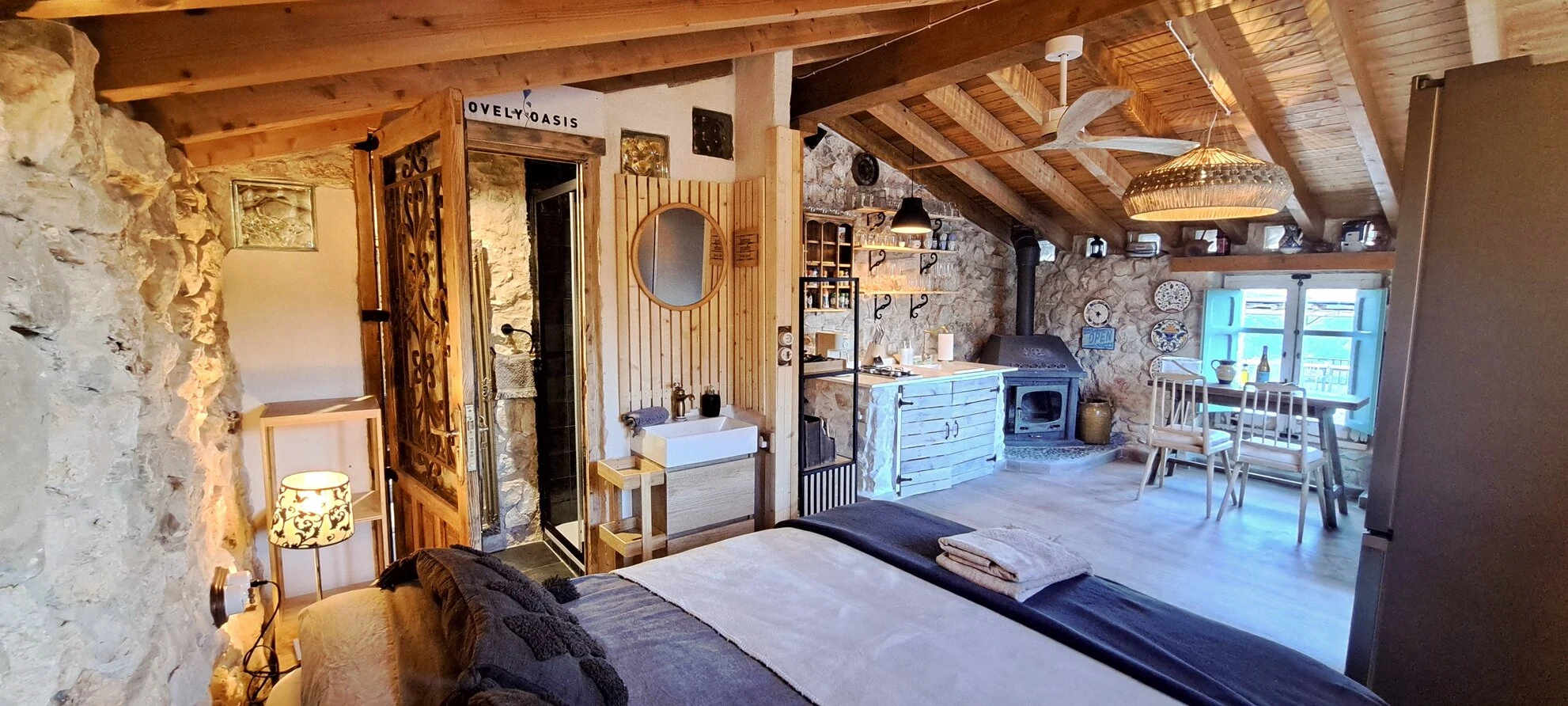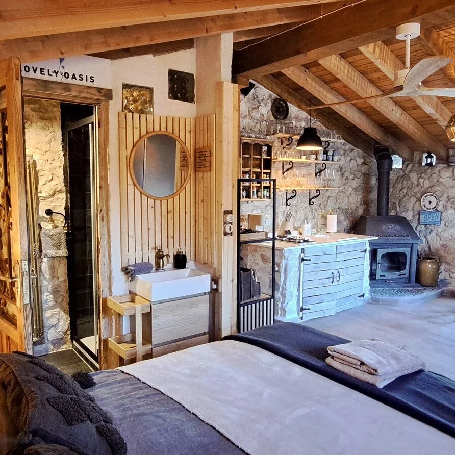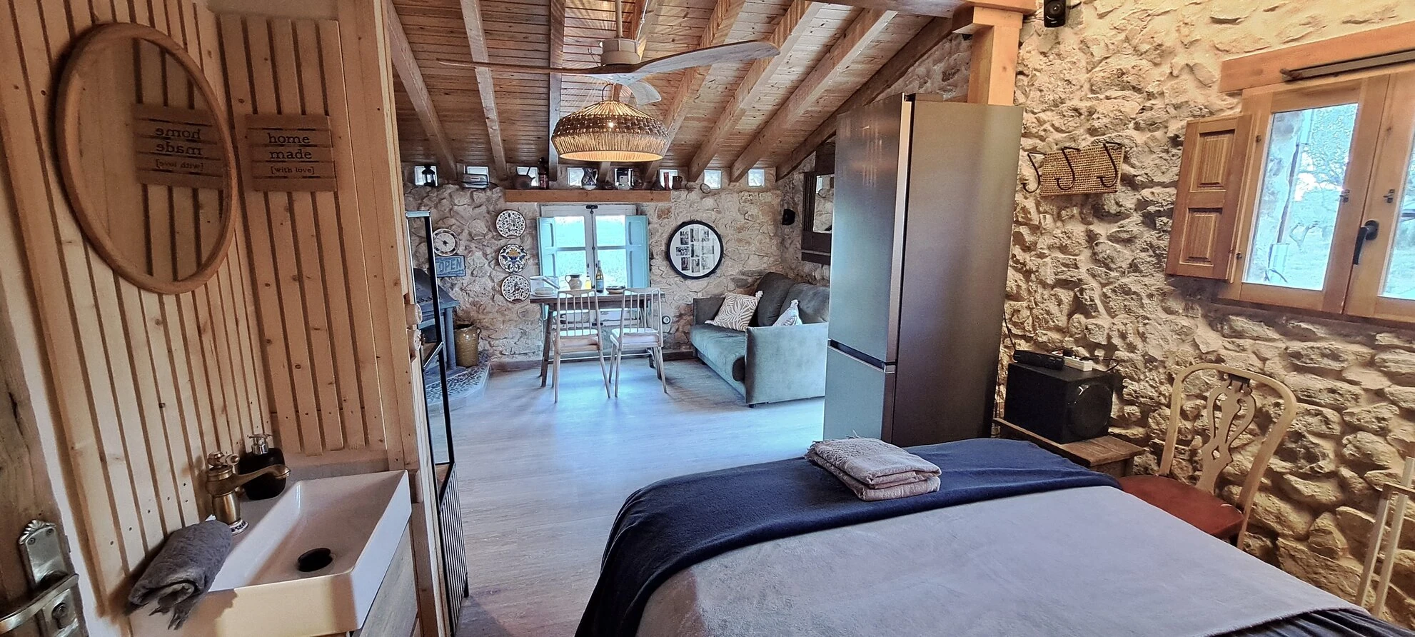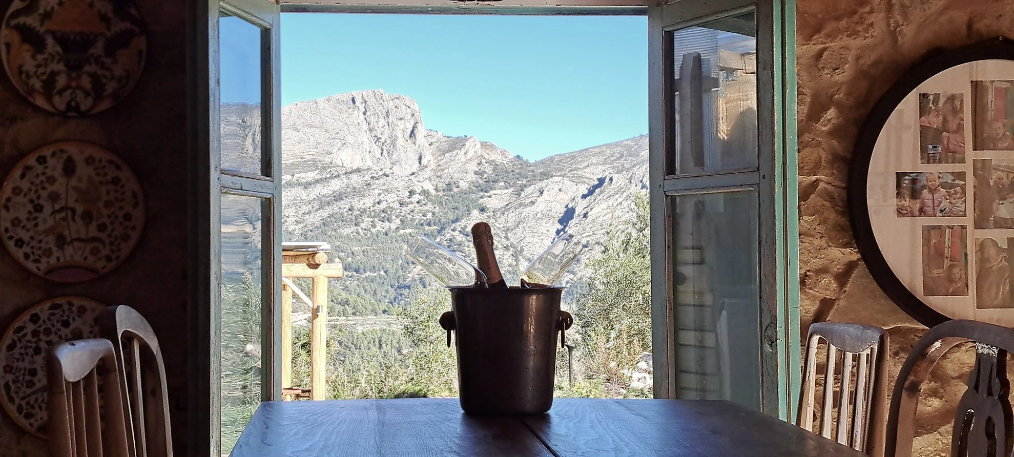 A handcrafted rural tiny house in the heart of the Guadalest Valley, offering pure tranquility, breathtaking sunsets, and an unplugged escape surrounded by olive trees and mountain views.